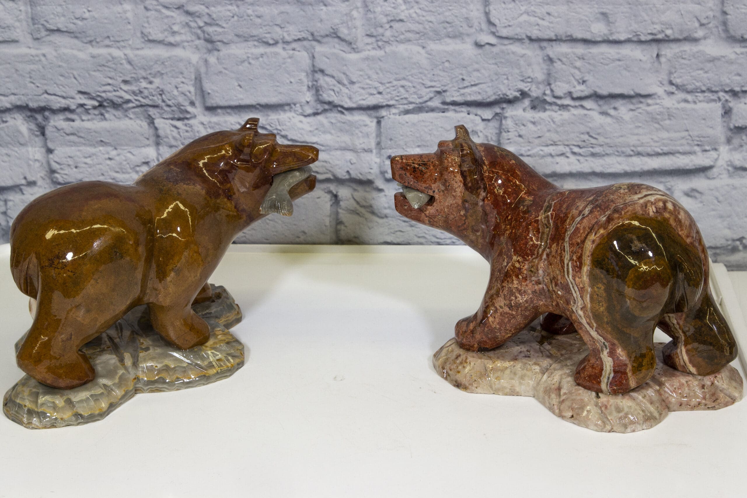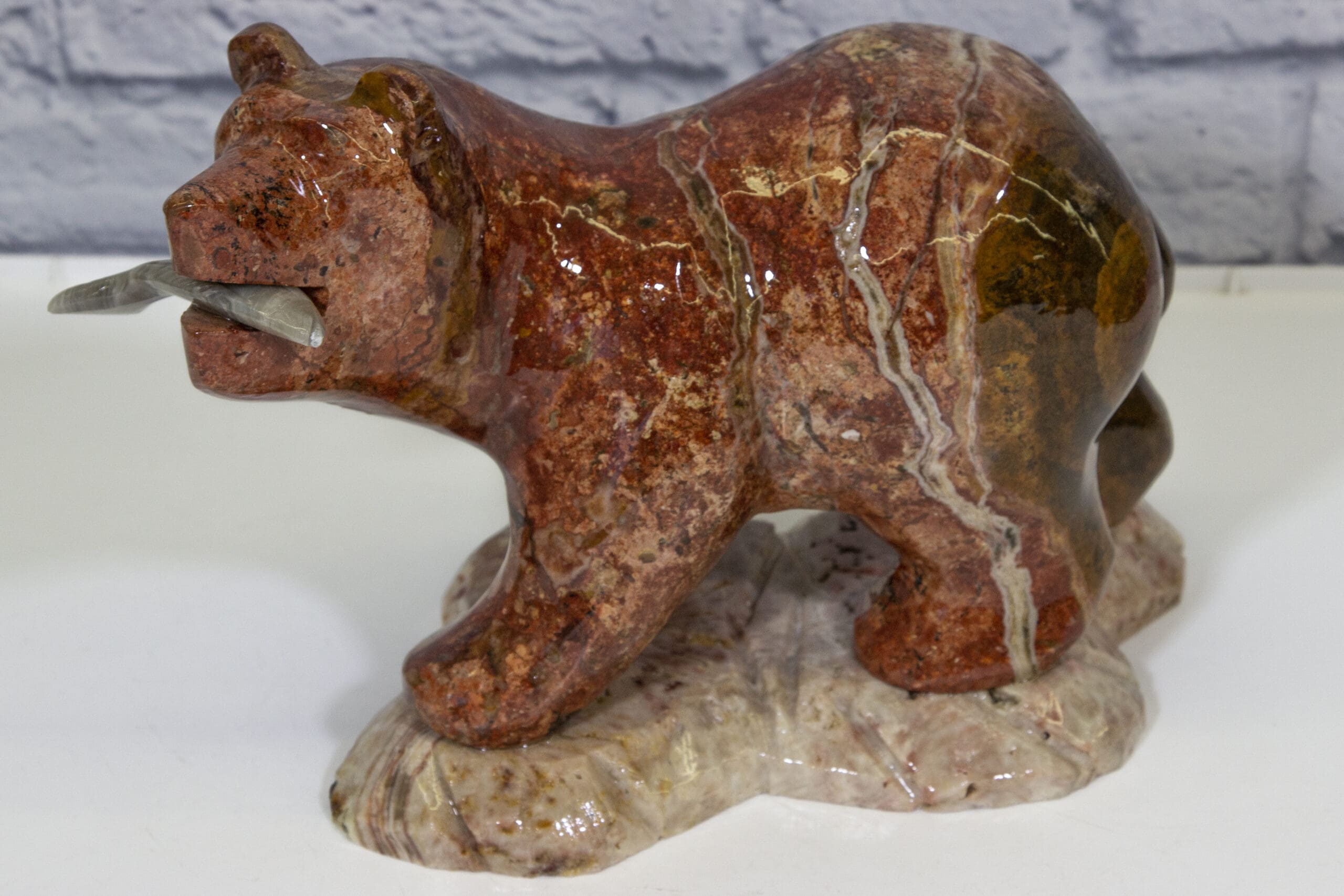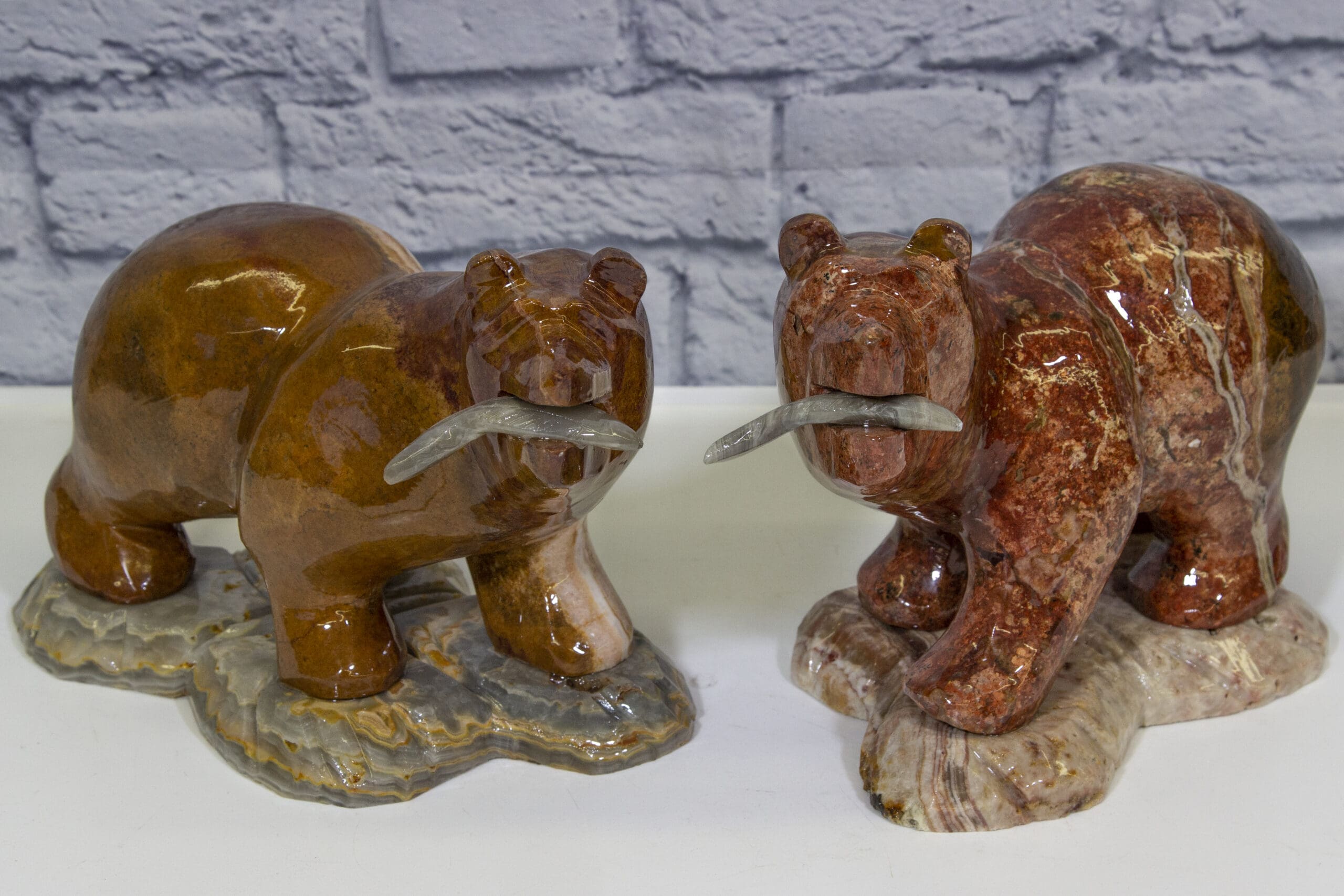 Each bear ststue will vary in color and pattern, due to being a natural stone.