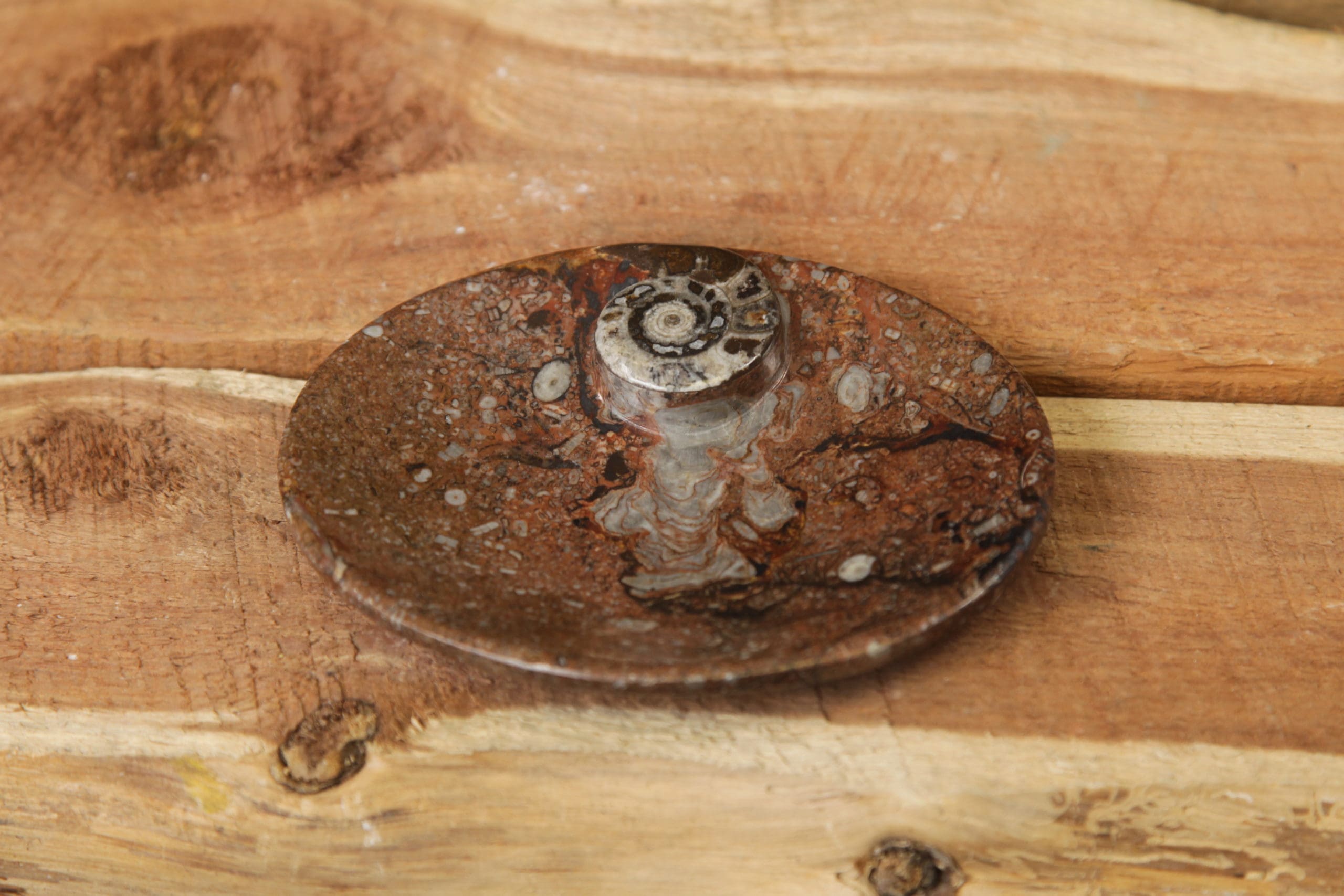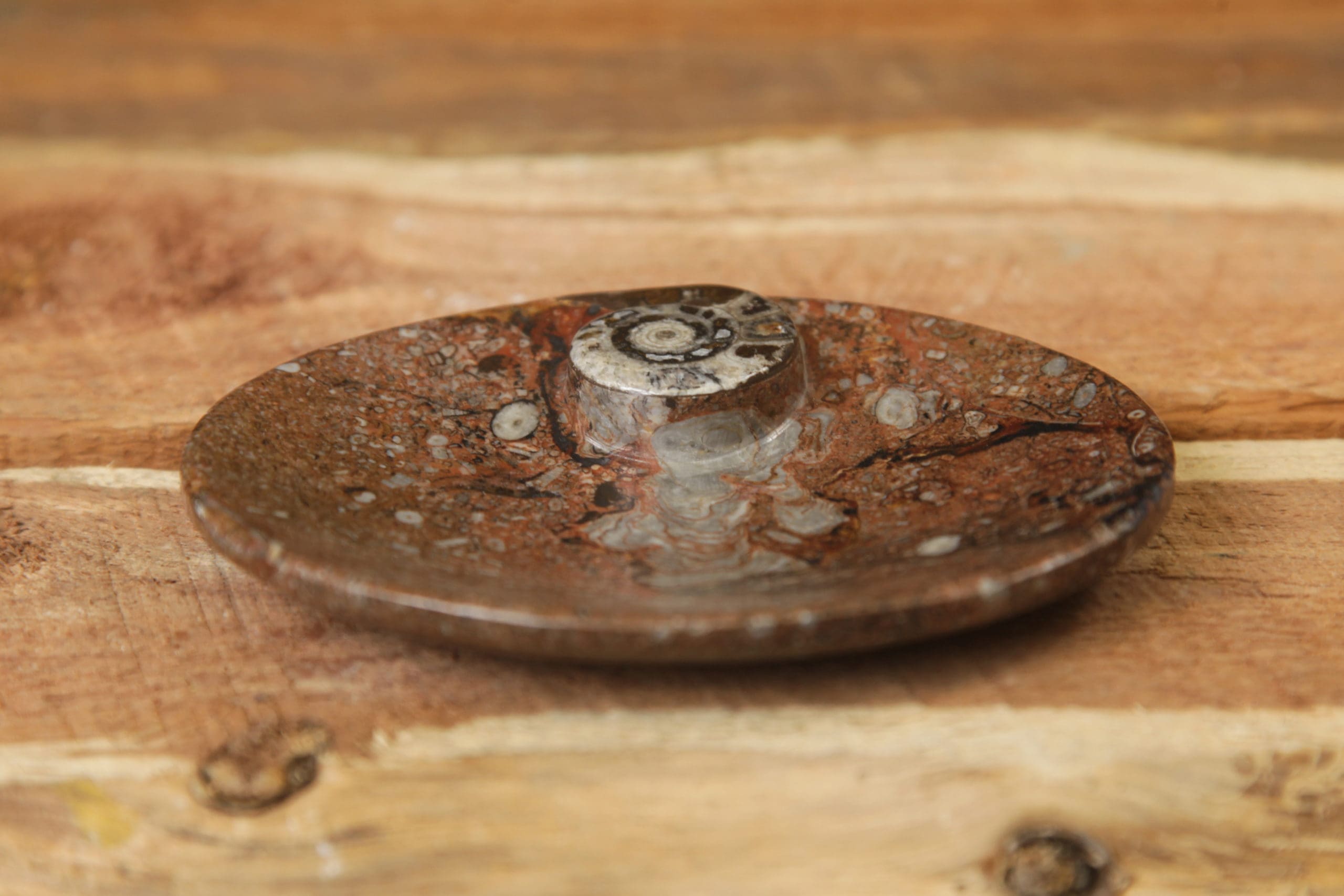 Ammonite dish small, 4.75×3.75, size, color, and fossil design will vary from dish to dish.