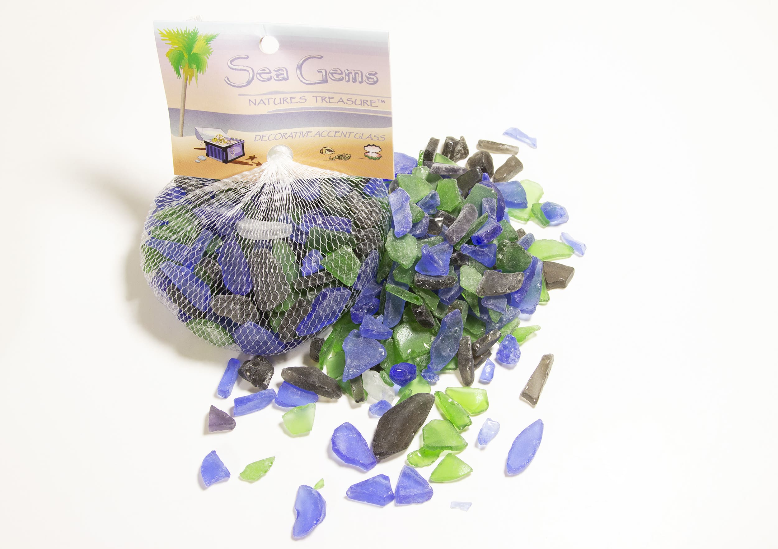This bag contains sea glass of various sizes.