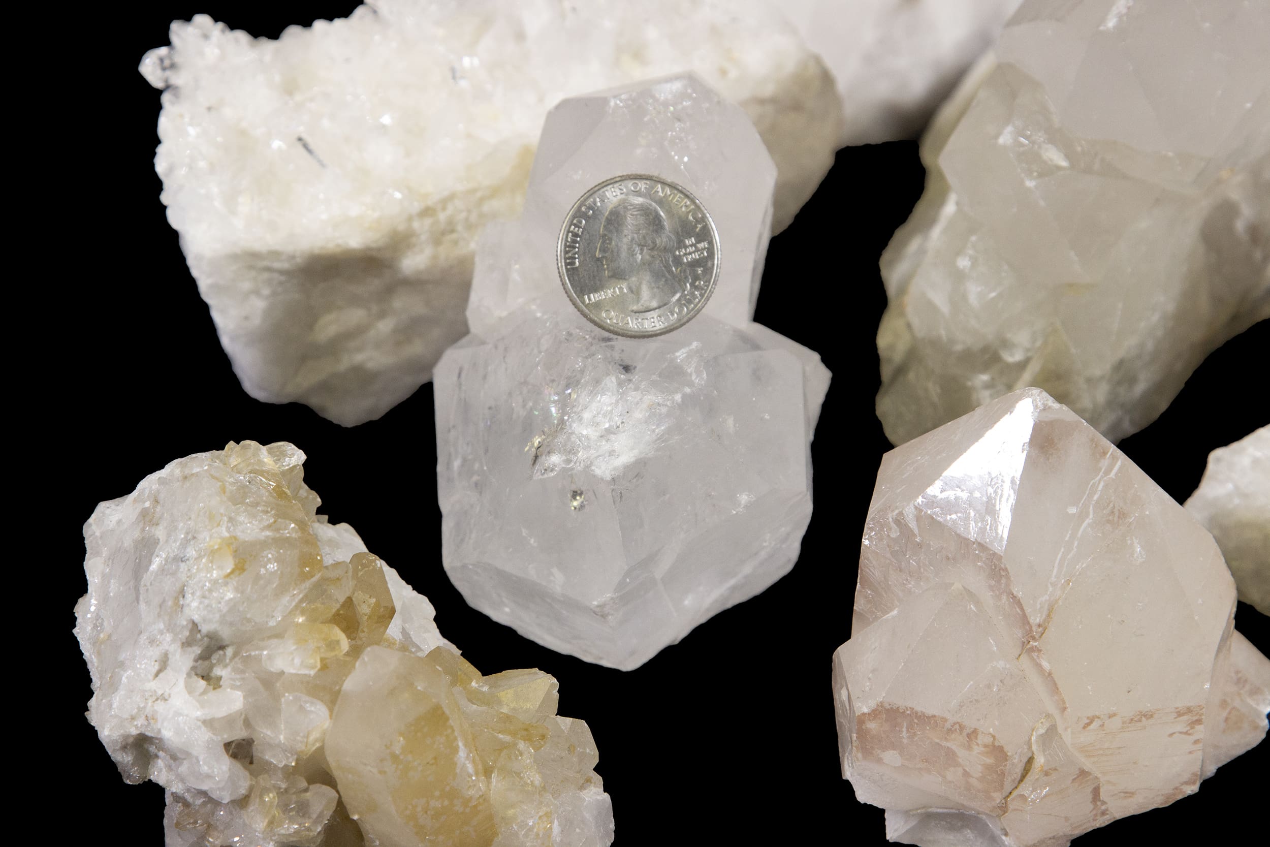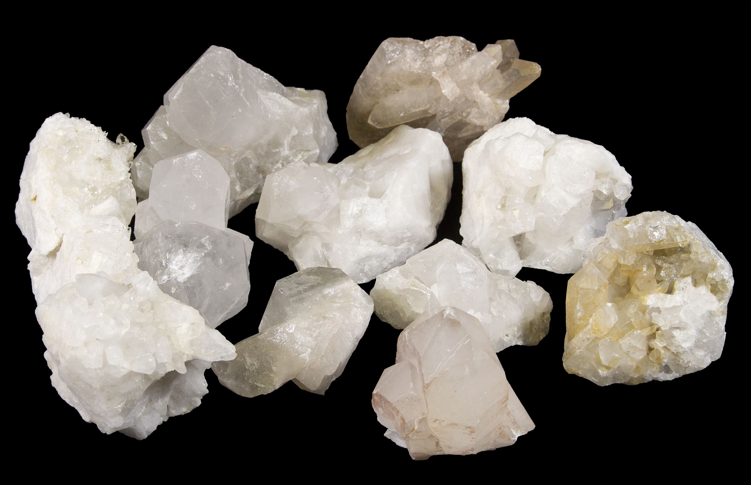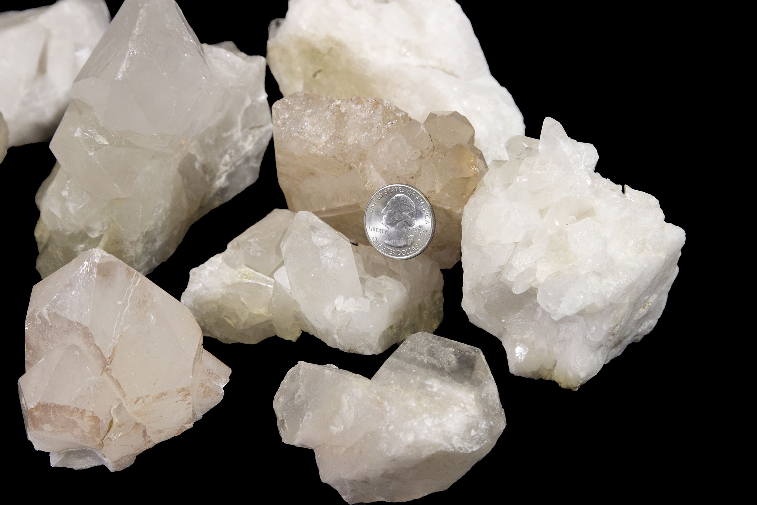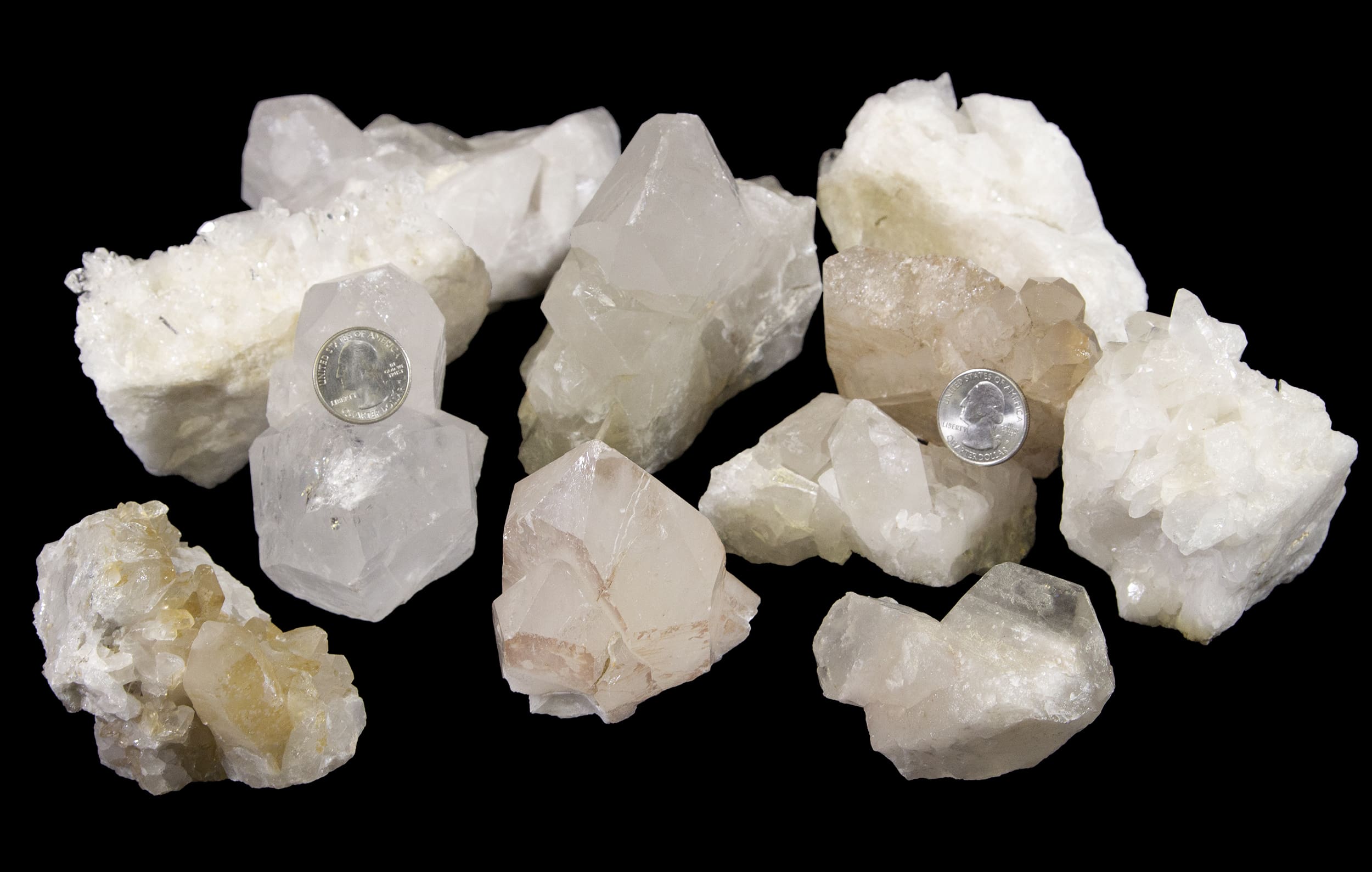 This lot includes a 5 lb mix of quartz clusters. These gorgeous clusters weigh 1-3 lbs. Each varies in size as they are a naturally formed crystal cluster.