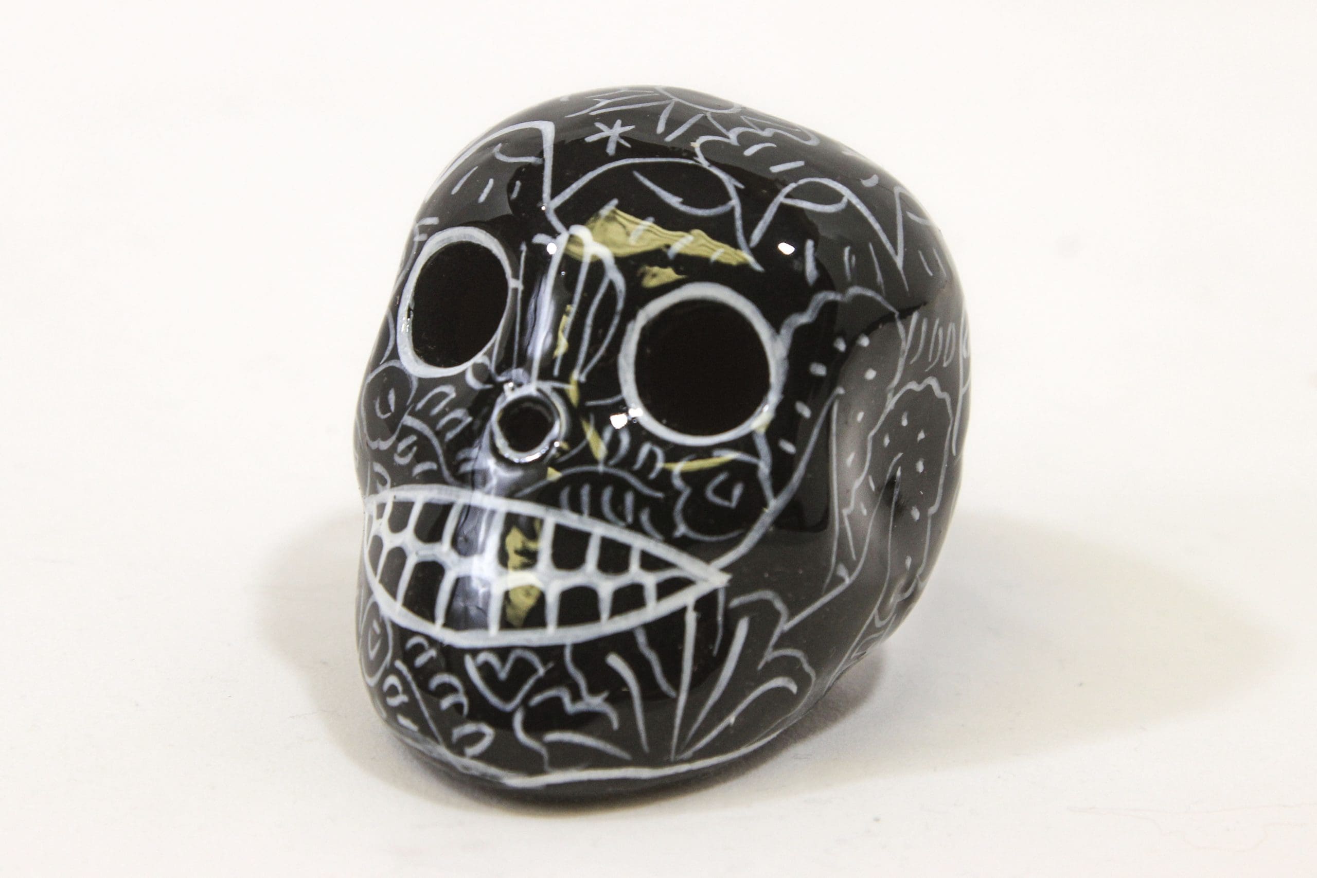 2″ Day of the Dead (Dia de los Muertos) Sugar Skull, Black, hand painted, each piece will vary in appearance.