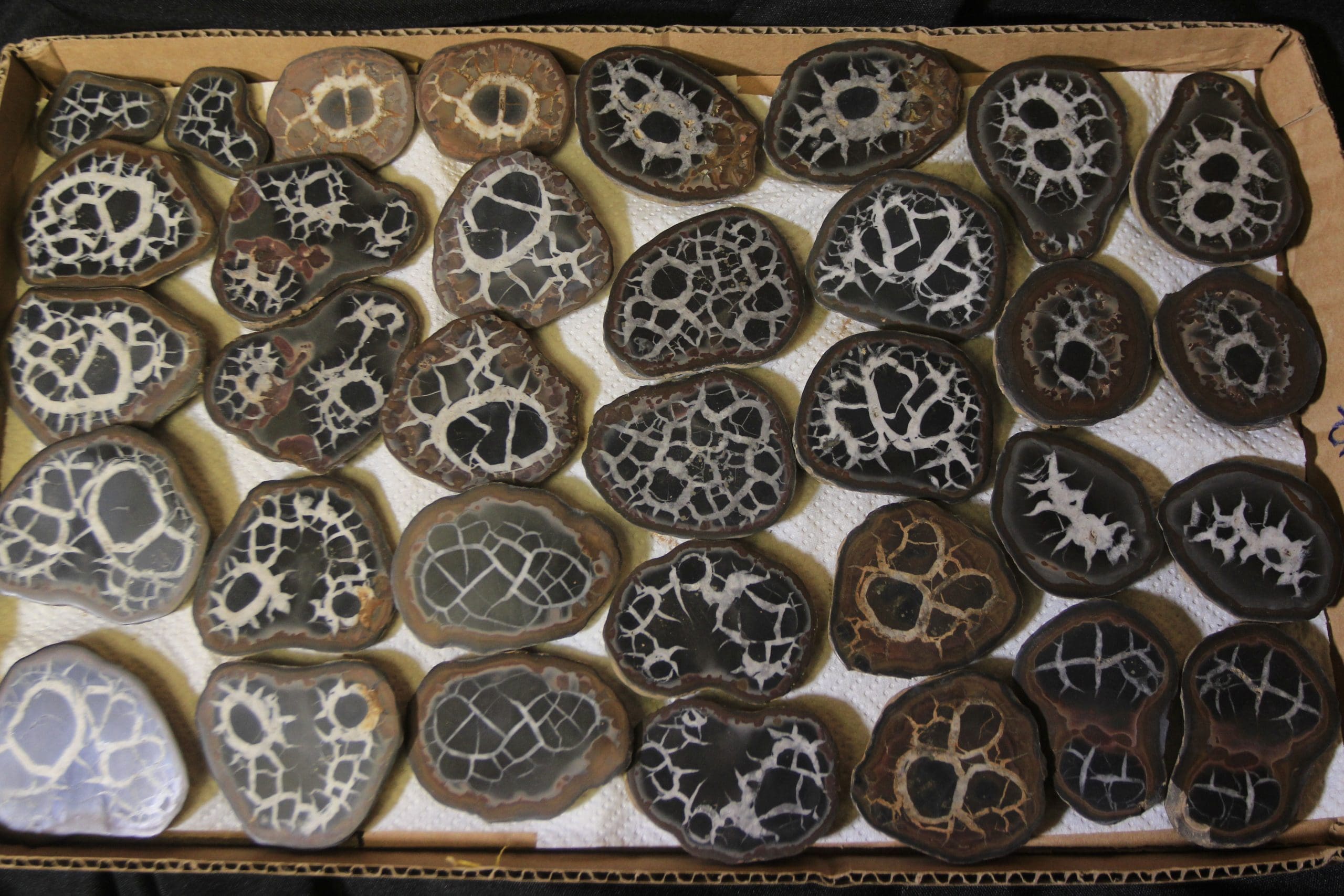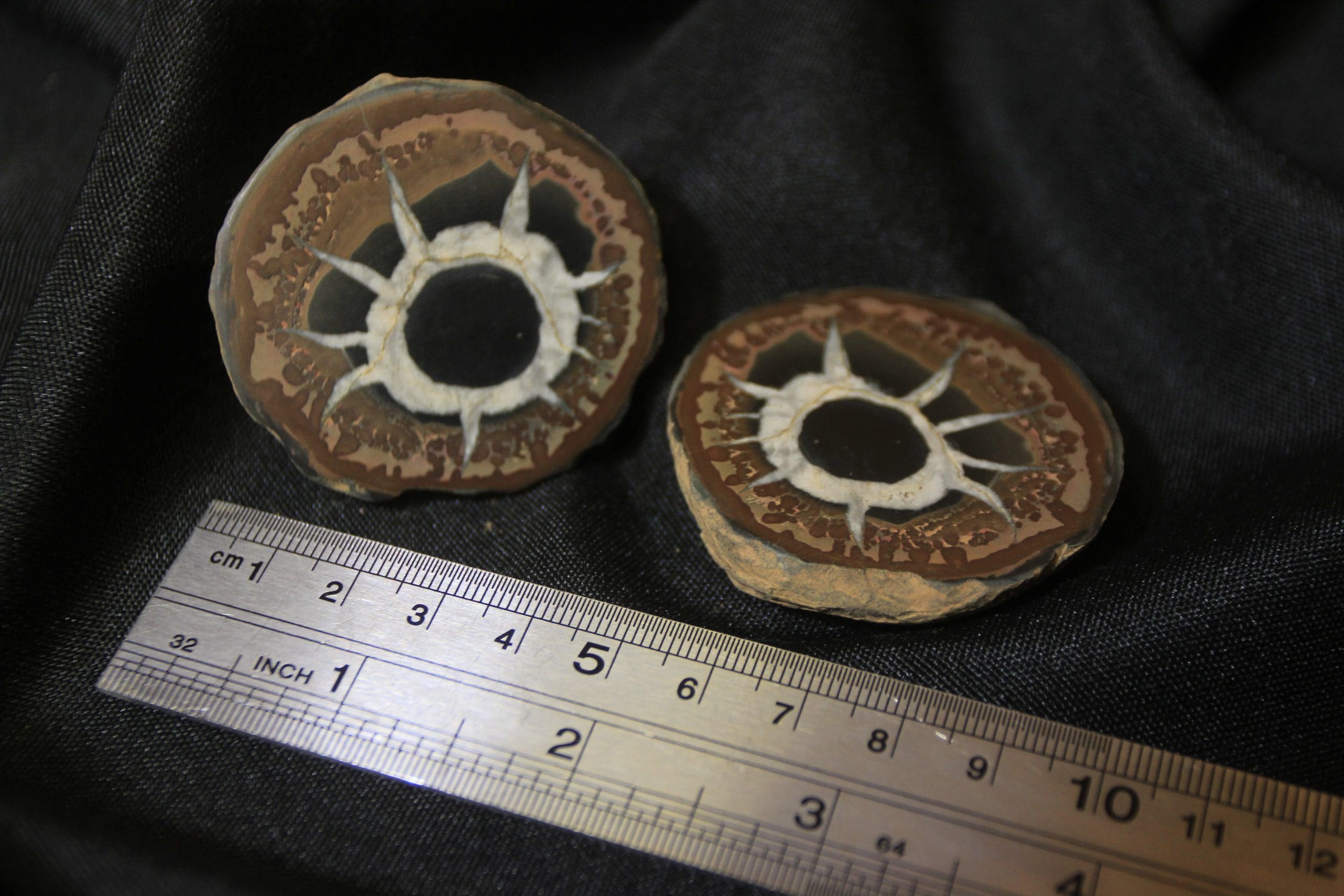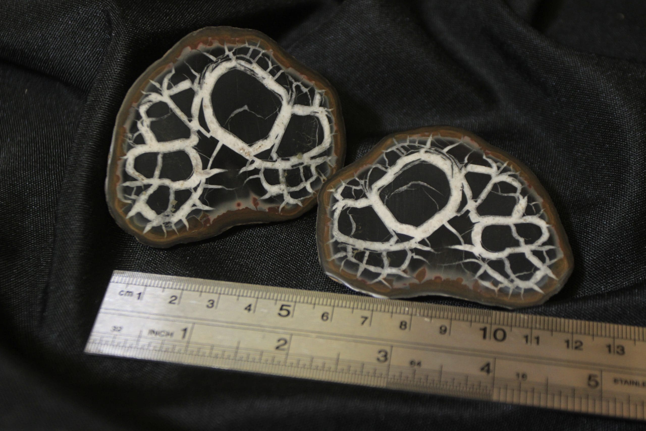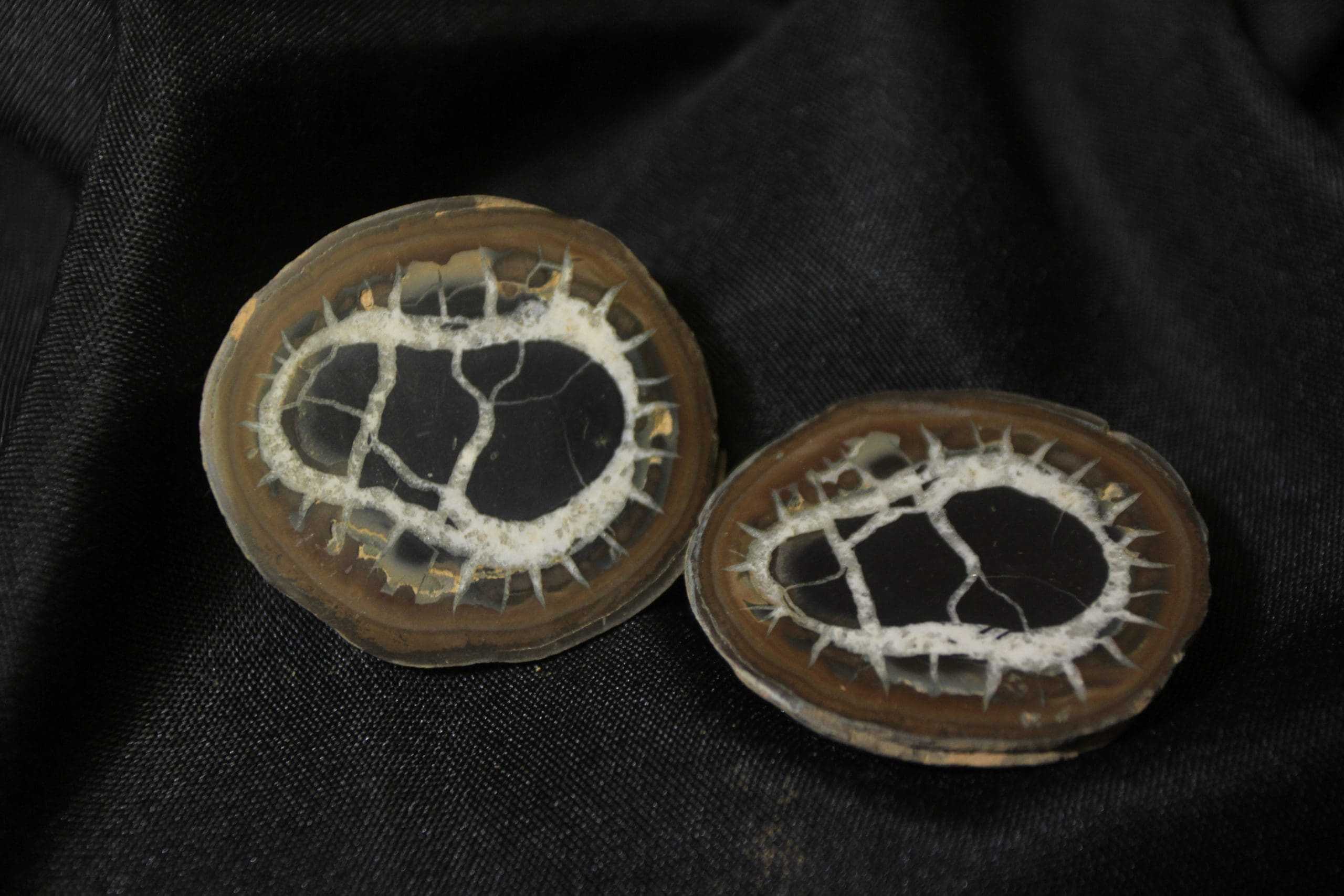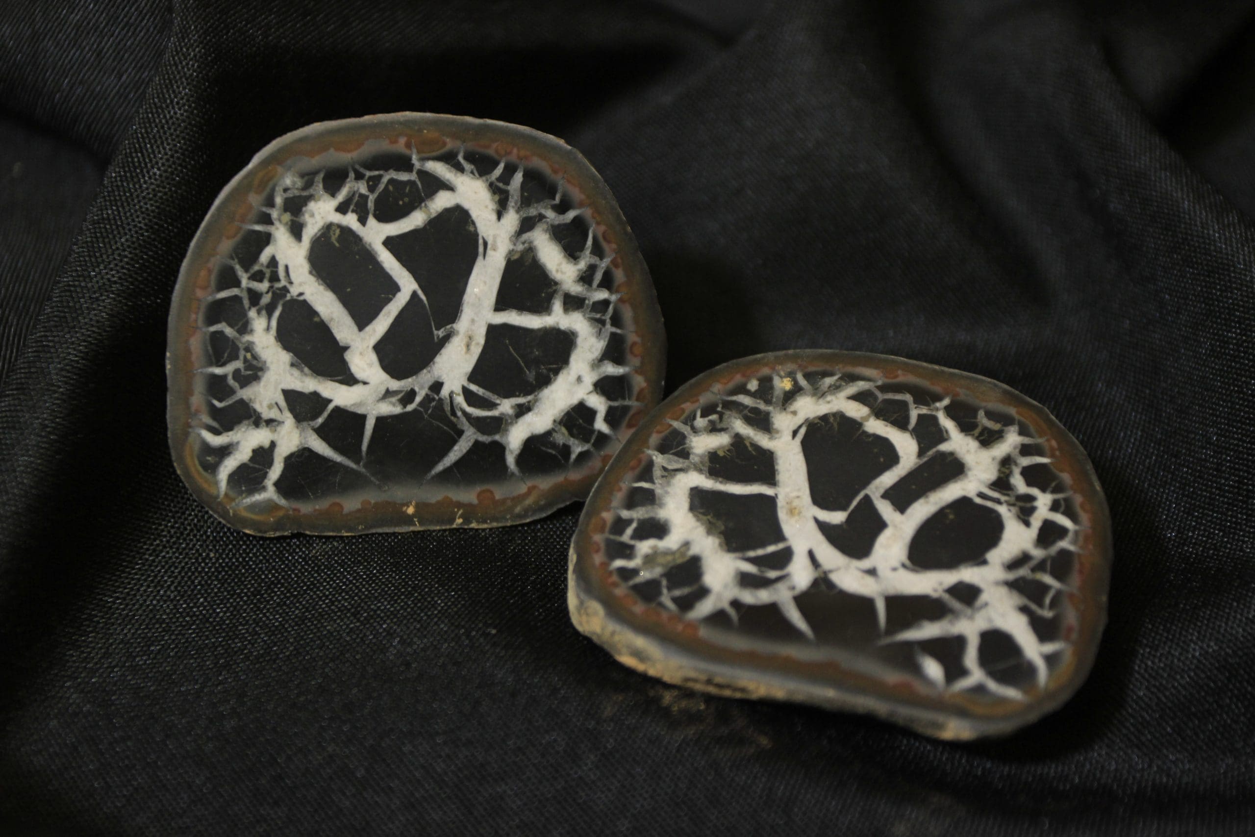 Septarian Nodule, or Dragon Stone matching pair will be anywhere from 2 1/2″ to 1 1/2″ in size, each complete pair will vary in shape, size, and appearance due to being a natural stone.